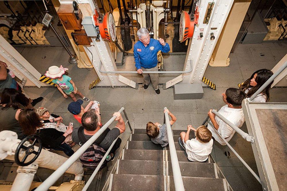Sehen Sie sich in The Age of Steam, einer Ausstellung an Bord des Fährschiffs Berkeley aus dem Viktorianischen Zeitalter, echte Dampfmaschinen neben historischen Fotoaufnahmen an. Das Schiff war selbst Teil der technologischen Revolution der Dampfkraft, durch die der globale Handel nach genauen Zeit- und Fahrplänen betrieben werden konnte.